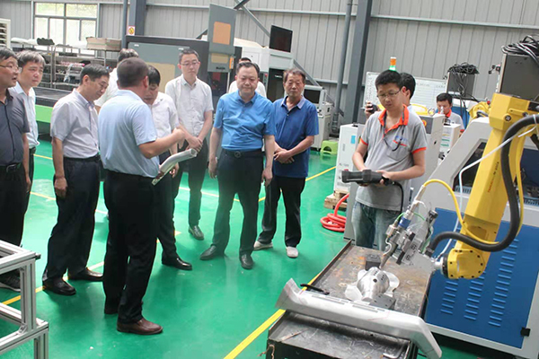 尹書記一行在公司總經(jīng)理陳義兵、執(zhí)行總經(jīng)理熊衍軍、常務副總易光純的陪同下逐一參觀了智能智造生產(chǎn)車間,總裝車間以及研發(fā)中心。陳總向尹書記匯報了公司的經(jīng)營情況、品牌戰(zhàn)略及未來發(fā)展的思路。易總向尹書記一行詳細解說了每一款激光設備的工作原理及行業(yè)應用。